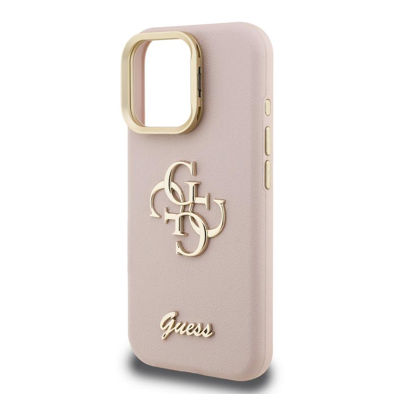 Guess Grained 4G Logo Stand Camera Frame Case for iPhone 16 Pro - Designer Style with Hands-Free Ease