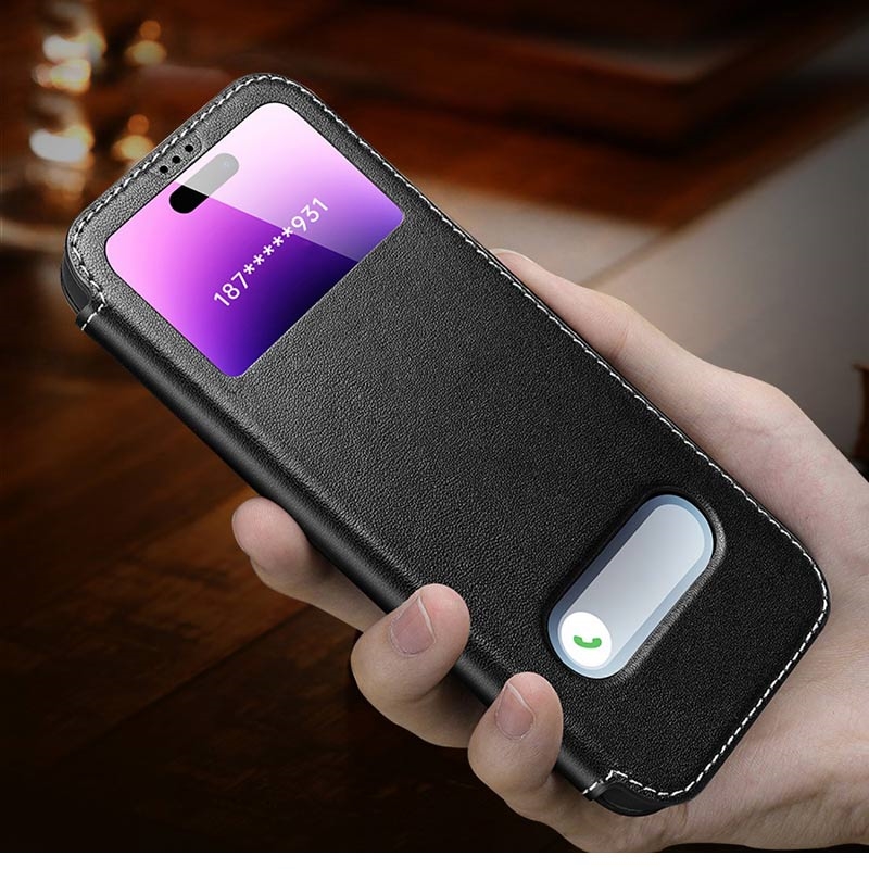 Window-style flip covers originated with feature phones in the early 2000 s, but pairing them with premium leather is newer: vegetable-tanned cowhide can withstand over 50 000 open-close cycles in lab tests, outlasting most synthetic alternatives while staying biodegradable at end of life.