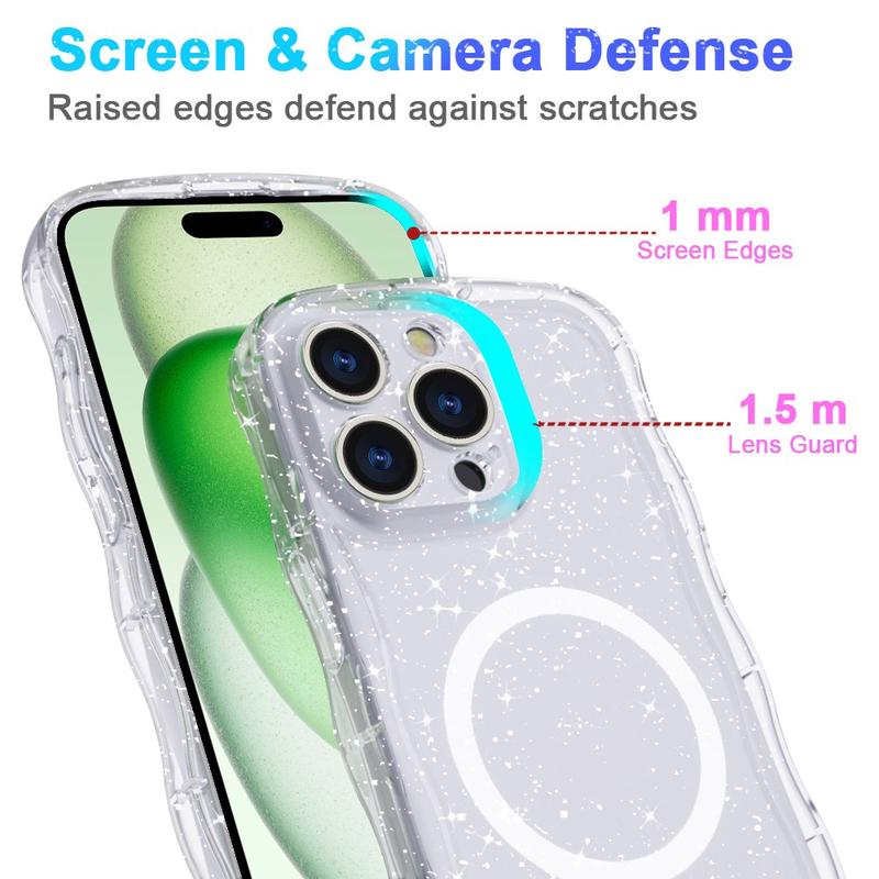 Wave-Edge Laser Glitter MagSafe TPU Case for iPhone 16 Pro Max