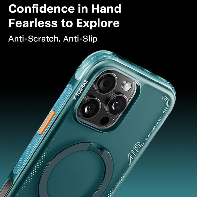 The Torras Ostand Q3 Air MagSafe Case for iPhone 16 Pro Max combines modern aesthetics with advanced protection. Crafted from high-quality TPU and PC materials, it provides a slim, stylish profile while offering a secure and comfortable grip.