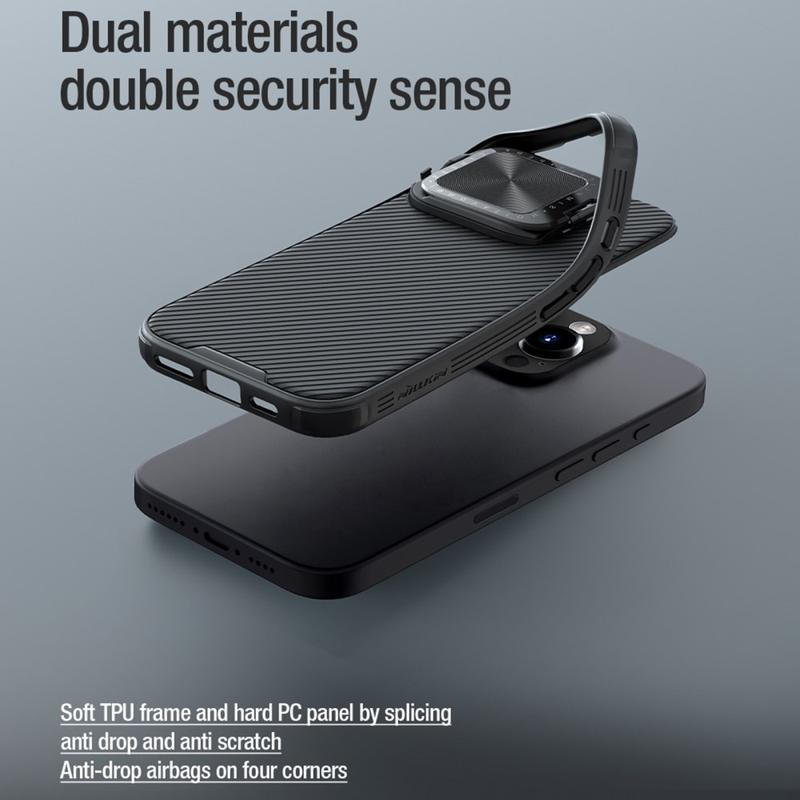 - Toto mimořádné hybridní pouzdro Nillkin CamShield Prop je vyrobeno z plastu a materiálů TPU