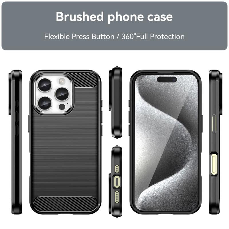 Pouzdro z Kartáčovaného TPU pro iPhone 16 Pro - Uhlíkové Vlákno
