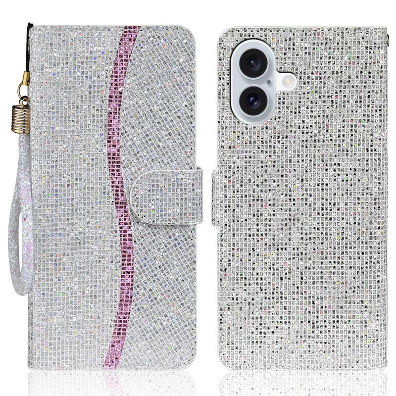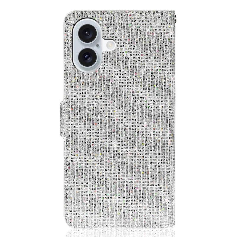 iPhone 16 Stylish Glitter Wallet Case - Silver
