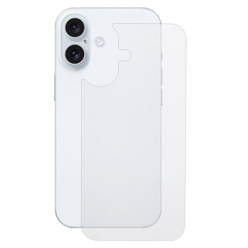 - A clear tempered glass back protector for iPhone 16