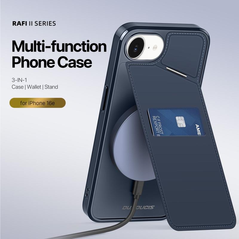 Keep your iPhone 16e safe and stylish with the Dux Ducis Rafi II Series Magnetic Case. This premium case combines a sleek leather finish with a durable TPU interior for comprehensive protection. Designed for functionality, it includes a built-in kickstand, magnetic closure, and card slots, making it ideal for users who need both convenience and elegance.