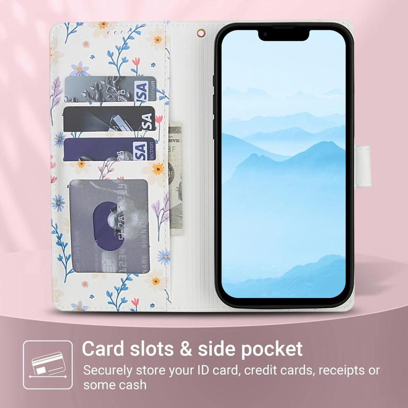 Rhombic Floral Wallet Case for iPhone 16e - with Strap and Card Slots