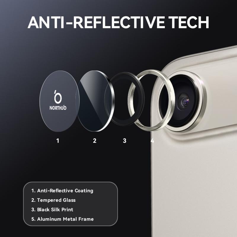 Upgrade your iPhone 17 Air with the Northjo camera lens protector. Featuring a CD veins aluminum ring, it adds a sleek, modern touch to your iPhone 17 Air while offering robust protection. The 9H tempered glass safeguards against scratches, impacts, and dust, ensuring your camera lens stays crystal clear. With easy, tool-free installation, you can enhance your iPhone 17 Air durability and aesthetics in seconds.