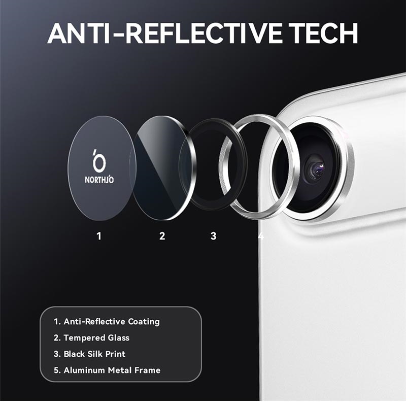Upgrade your iPhone 17 Air with the Northjo camera lens protector. Featuring a CD veins aluminum ring, it adds a sleek, modern touch to your iPhone 17 Air while offering robust protection. The 9H tempered glass safeguards against scratches, impacts, and dust, ensuring your camera lens stays crystal clear. With easy, tool-free installation, you can enhance your iPhone 17 Air durability and aesthetics in seconds.