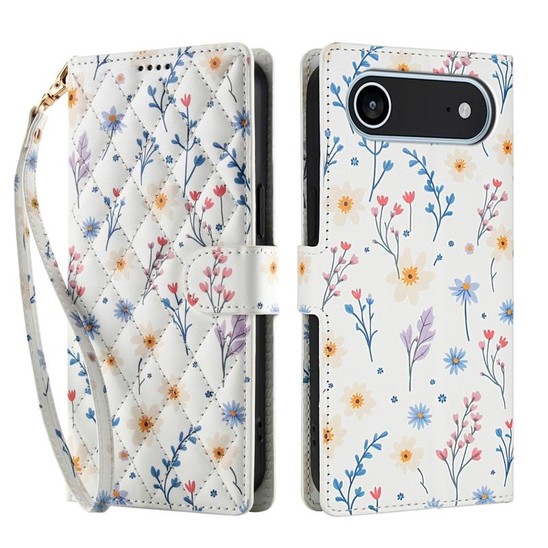 Rhombic Floral Wallet Case for iPhone 17 Air - with Strap and Card Slots