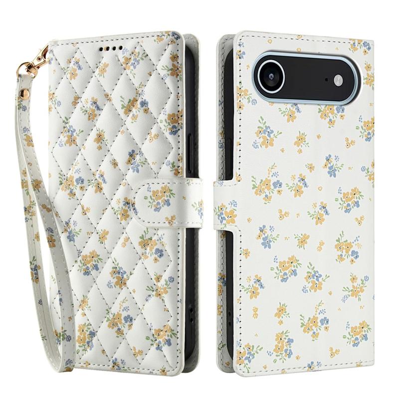 Rhombic Floral Wallet Case for iPhone 17 Air - with Strap and Card Slots
