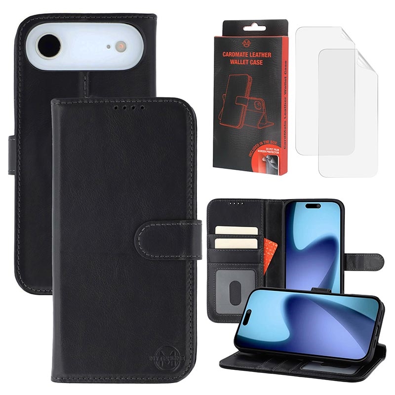 MyTPhone CardMate Premium Leather Wallet Case for iPhone 17 Air - Stand Feature, Card Holder, Wireless Charging Support, 2x Screen Protector