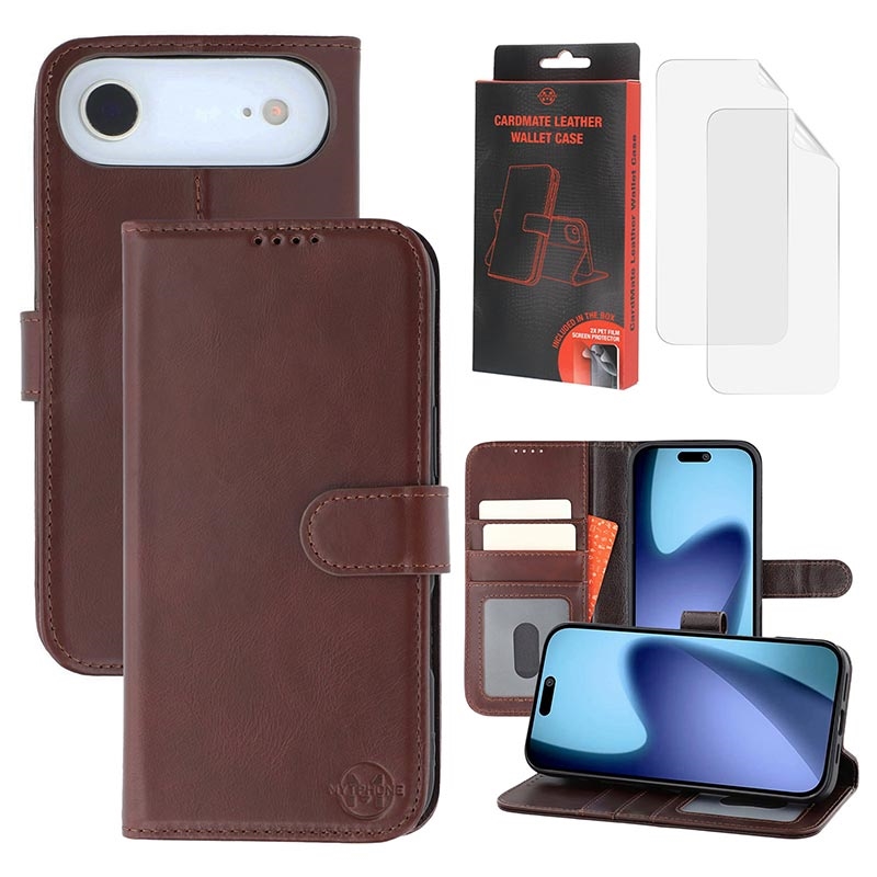 MyTPhone CardMate Premium Leather Wallet Case for iPhone 17 Air - Stand Feature, Card Holder, Wireless Charging Support, 2x Screen Protector