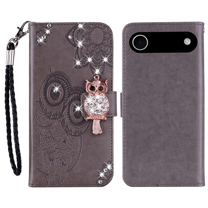Keep your iPhone 17 Air safe and stylish with this Owl Rhinestone Wallet Case. Made with a premium polyurethane shell and a flexible TPU inner case, this case is durable for long term use, providing protection against daily wear and tear, scratches, marks, and scrapes. The distinctive owl imprint and rhinestone decoration make this case eye-catching and trendy, while the practical design combines your wallet and phone case into one handy unit. The supporting stand design allows for convenient free-hands use when watching movies or reading, while the ultra-strong magnetic closure keeps all your valuable items secure. This case ensures full access to ports and function buttons, speakers, and the camera for hassle-free use. It also comes with a handy strap for easy carrying, making it the perfect accessory for your iPhone 17 Air.