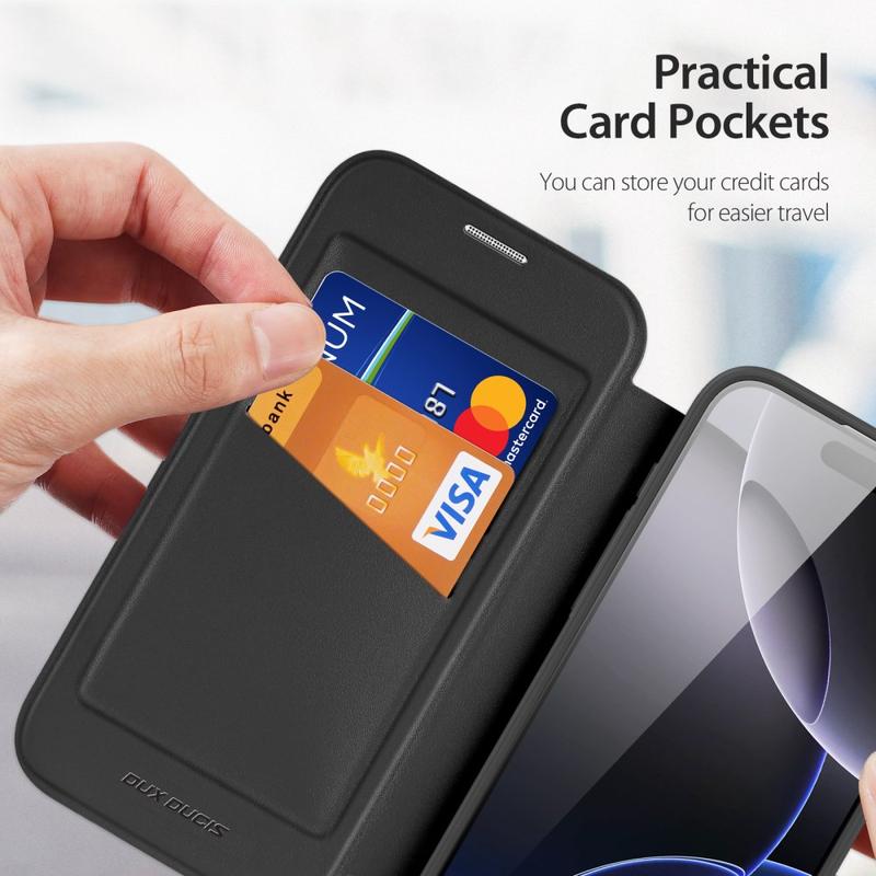 Elevate your iPhone 17 Pro Max with the Dux Ducis Skin X Pro Series Magnetic Case, designed for both style and functionality. This luxurious polyurethane case features a magnetic closure, rotary kickstand, and a convenient card slot, offering all-in-one protection and convenience. The case is crafted from premium materials, ensuring durability while maintaining a sleek and slim profile. Its versatile design makes it perfect for hands-free viewing, secure storage, and stylish protection.