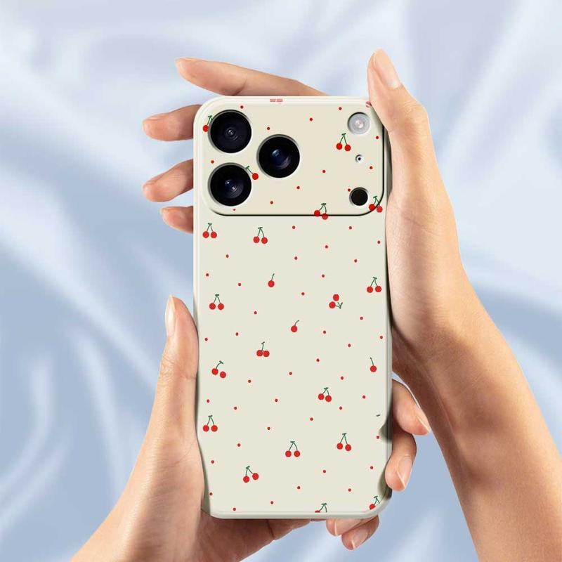 Cherry Pattern TPU Case for iPhone 17 Pro - Soft-Touch Liquid-Silicone Texture with Raised Camera Guard