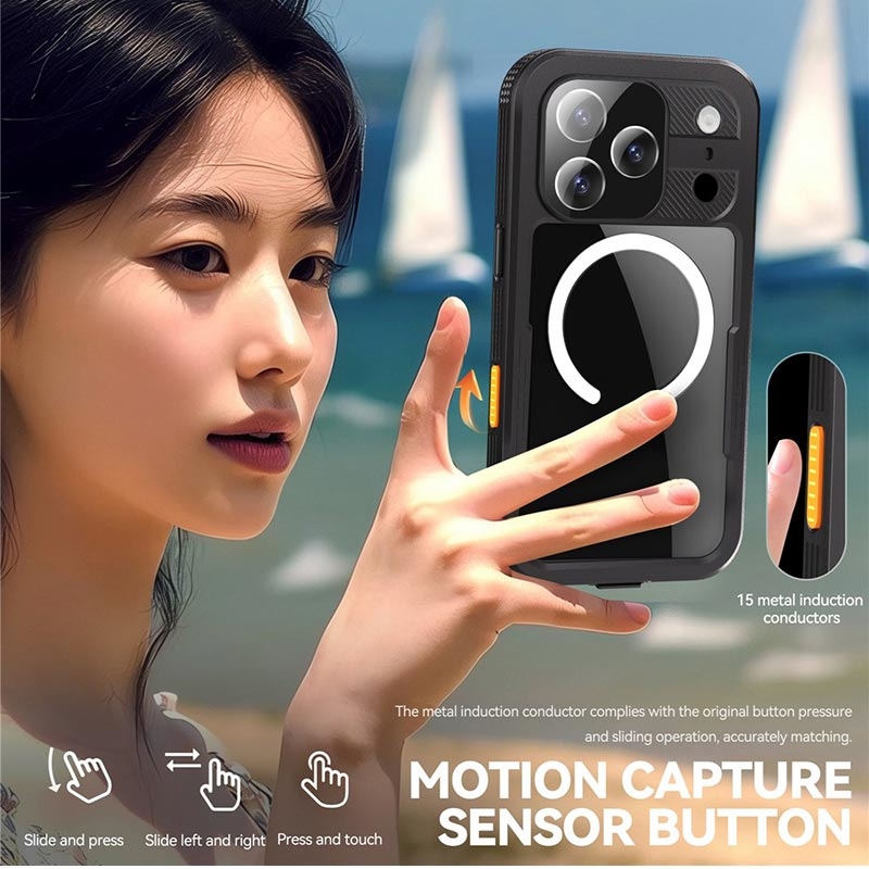 Protect your iPhone 17 Pro Max during underwater adventures with the Shellbox M Series IP68 Waterproof Case. Engineered for durability, this metal diving cover offers full-body protection up to 15 meters underwater, while maintaining MagSafe compatibility for seamless wireless charging. Its robust construction ensures your device remains secure in extreme conditions, making it ideal for divers, snorkelers, and outdoor enthusiasts.