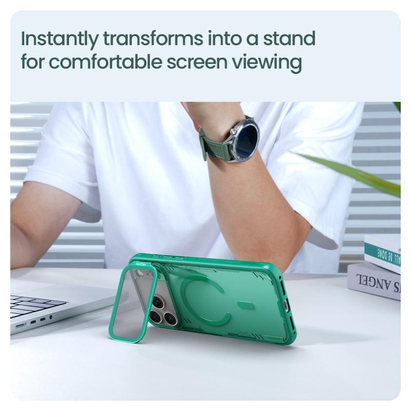 Protect your iPhone 17 Pro Max with the Nillkin IceBlade Prop Magnetic Case. This sleek case combines durability with convenience, offering full MagSafe compatibility. Made from PC and TPU, it ensures robust protection while its slide lens lid safeguards your camera from scratches and dust.