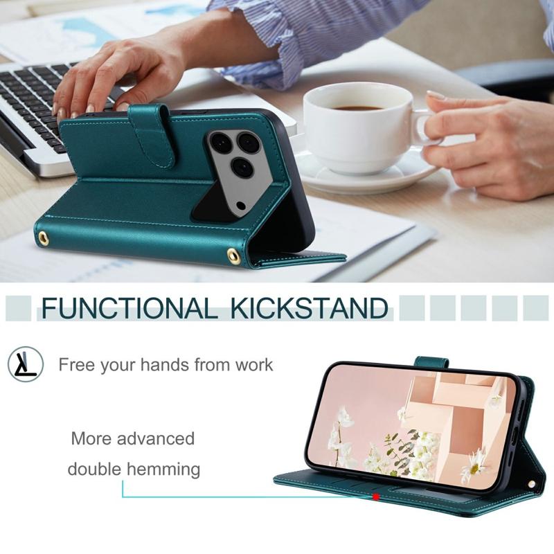 Protect your iPhone 17 Pro with this luxurious quilted wallet case. Constructed with TPU material coated with PU leather, this case is scratch-resistant and anti-fingerprint, keeping your phone looking stylish and sleek. The stitching line forms a rhombus grid pattern, adding a fashionable and beautiful touch to the case. The raised edge of the camera and screen offers effective protection against scratches, while the precise cutouts provide full access to all buttons, ports, and other features. The wallet design allows for easy storage of essential cards and cash. With added protection against scratches, impact, drops, and daily damage, this case also comes with a shoulder strap and wrist strap for added convenience.