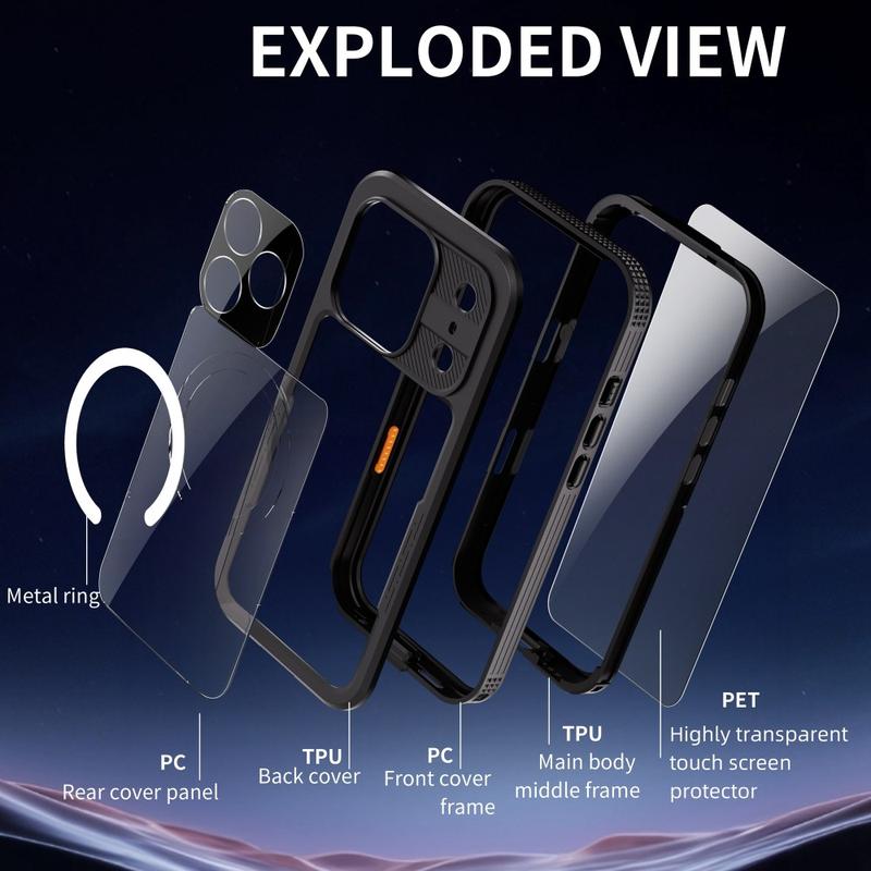 Protect your iPhone 17 Pro without hiding its style. This REDPEPPER case pairs polycarbonate with soft-touch TPU bumpers and PET, sealing out water, dust and snow while standing up to everyday drops. Built-in magnets align perfectly with MagSafe accessories, so wireless power and car mounts stay effortless.