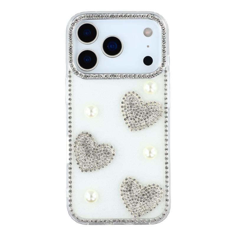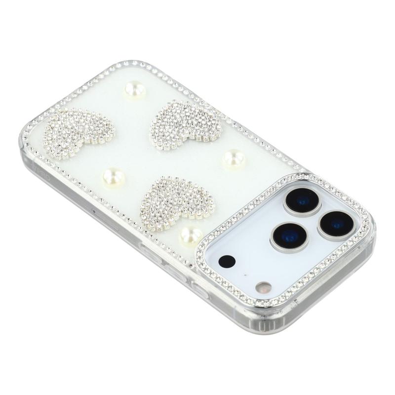 This iPhone 17 Pro case combines reliable everyday protection with glamorous style. Featuring shimmering rhinestones around the edges and sparkling pearl heart decorations on the back, it turns your iPhone 17 Pro into a fashionable accessory while keeping it safe from scratches and bumps.