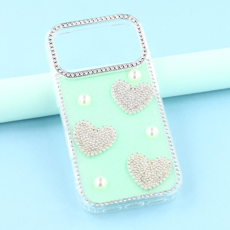 This iPhone 17 Pro Max case combines reliable everyday protection with glamorous style. Featuring shimmering rhinestones around the edges and sparkling pearl heart decorations on the back, it turns your iPhone 17 Pro Max into a fashionable accessory while keeping it safe from scratches and bumps.