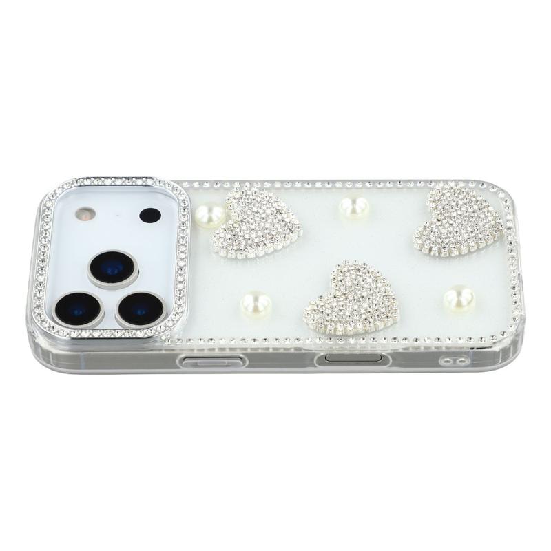 This iPhone 17 Pro Max case combines reliable everyday protection with glamorous style. Featuring shimmering rhinestones around the edges and sparkling pearl heart decorations on the back, it turns your iPhone 17 Pro Max into a fashionable accessory while keeping it safe from scratches and bumps.