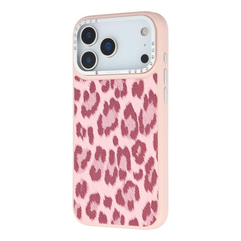 Jaucase Leopard Print Magnetic Hybrid Case for iPhone 17 Pro Max - PU + TPU + PC with Rhinestone Lens Frame
