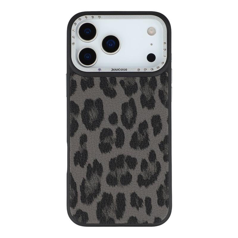 Jaucase Leopard Print Magnetic Hybrid Case for iPhone 17 Pro Max - PU + TPU + PC with Rhinestone Lens Frame