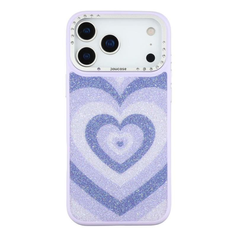 Jaucase Heart Pattern Magnetic Hybrid Case for iPhone 17 Pro – Polyurethane + TPU + PC with Rhinestone Lens Frame