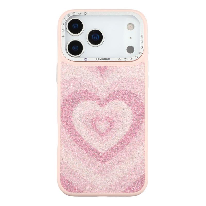 Jaucase Heart Pattern Magnetic Hybrid Case for iPhone 17 Pro – Polyurethane + TPU + PC with Rhinestone Lens Frame