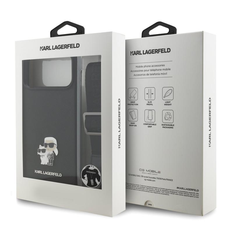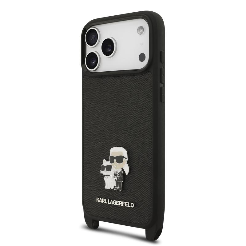 - Karl Lagerfeld Saffiano Crossbody Metal Karl & Choupette case for iPhone 17 Pro Max