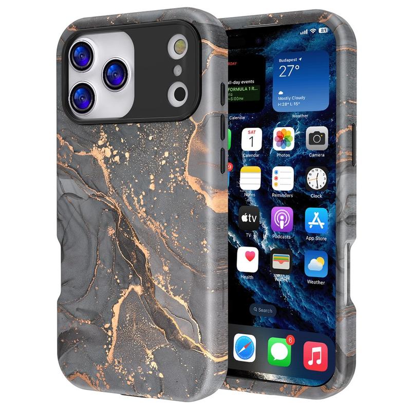iPhone 17 Pro Luxury Marble Hybrid Case - Stylish PC and TPU Shockproof Phone Cover with Camera Protection