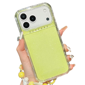 Glitter Shockproof Hybrid Case with Wrist Strap for iPhone 17 Pro Max – PC + TPU Protective Cover