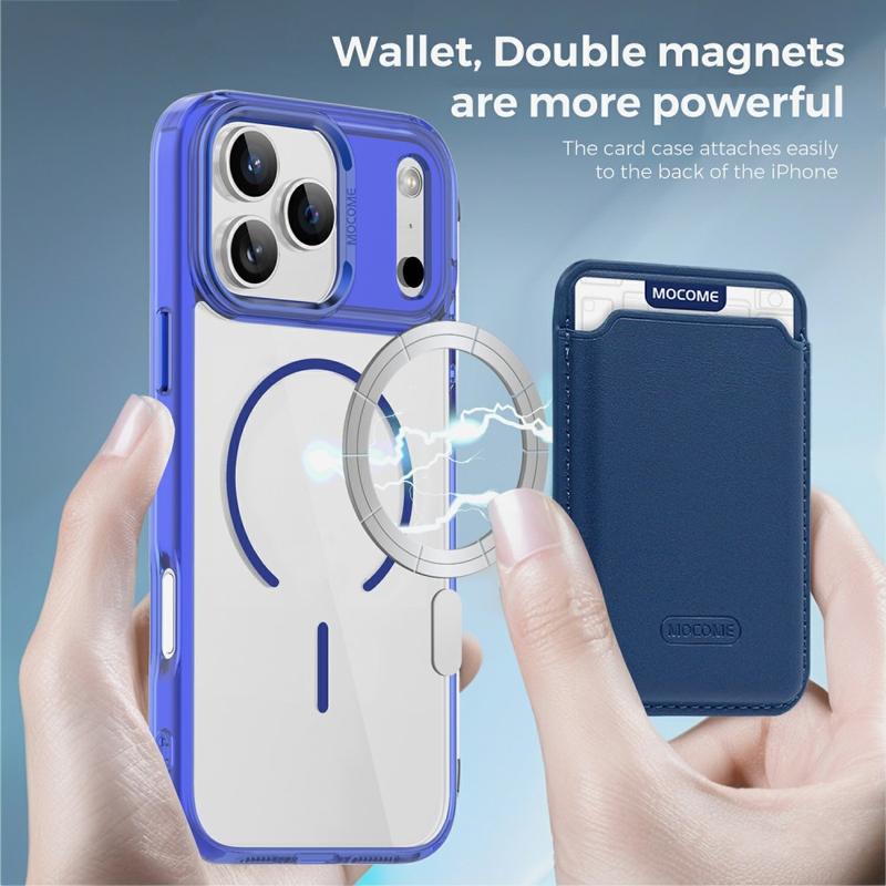 Protect your device in style with the MagSafe Case for iPhone 17 Pro Max, designed for both durability and convenience. Built with a hybrid TPU + PC construction, this case combines flexibility with strength to guard against drops, scratches, and daily wear. The integrated magnetic ring makes it fully compatible with MagSafe charging and magnetic car mounts, while the detachable dual-magnet slim card bag lets you carry 1-2 cards without adding bulk. A crystal-clear finish keeps your iPhone 17 Pro Max looking sleek and original, while reinforced edges and raised bezels ensure all-round protection for your screen and camera.