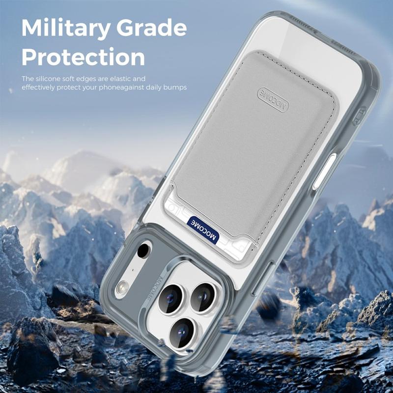 Protect your device in style with the MagSafe Case for iPhone 17 Pro, designed for both durability and convenience. Built with a hybrid TPU + PC construction, this case combines flexibility with strength to guard against drops, scratches, and daily wear. The integrated magnetic ring makes it fully compatible with MagSafe charging and magnetic car mounts, while the detachable dual-magnet slim card bag lets you carry 1-2 cards without adding bulk. A crystal-clear finish keeps your iPhone 17 Pro looking sleek and original, while reinforced edges and raised bezels ensure all-round protection for your screen and camera.