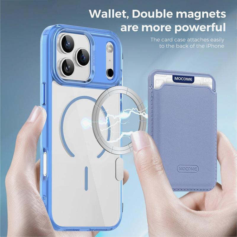 Protect your device in style with the MagSafe Case for iPhone 17 Pro, designed for both durability and convenience. Built with a hybrid TPU + PC construction, this case combines flexibility with strength to guard against drops, scratches, and daily wear. The integrated magnetic ring makes it fully compatible with MagSafe charging and magnetic car mounts, while the detachable dual-magnet slim card bag lets you carry 1-2 cards without adding bulk. A crystal-clear finish keeps your iPhone 17 Pro looking sleek and original, while reinforced edges and raised bezels ensure all-round protection for your screen and camera.