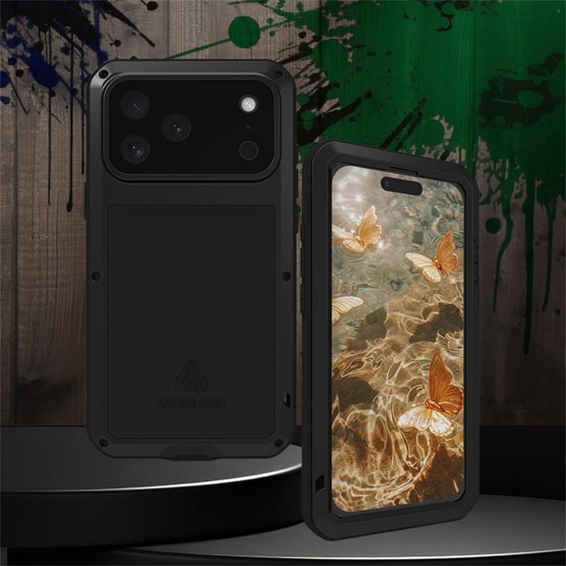 Love Mei Powerful Hybrid Case for iPhone 17 Pro Max - Heavy-Duty Metal & Silicone Shockproof Protective Cover
