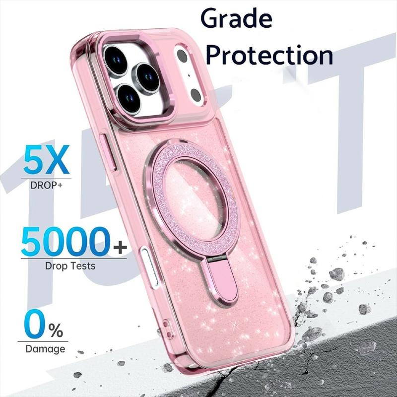 Bring style and protection together with the iPhone 17 Pro glitter case, combining elegant sparkle with reliable everyday durability. Made from high-quality materials and equipped with a built-in metal ring kickstand, this case keeps your phone secure, functional, and fashionable all day long.