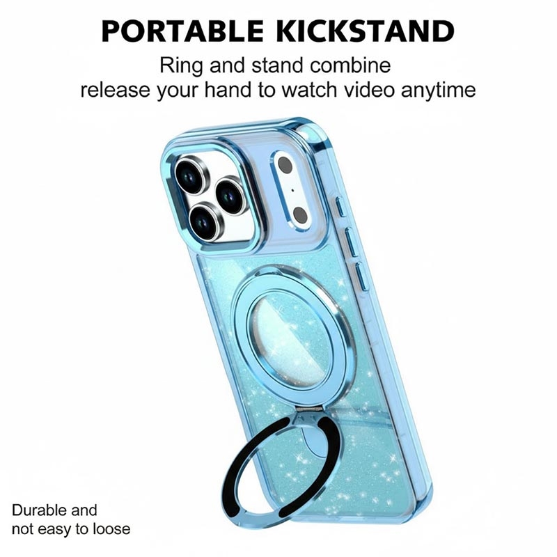 Bring style and protection together with the iPhone 17 Pro glitter case, combining elegant sparkle with reliable everyday durability. Made from high-quality materials and equipped with a built-in metal ring kickstand, this case keeps your phone secure, functional, and fashionable all day long.
