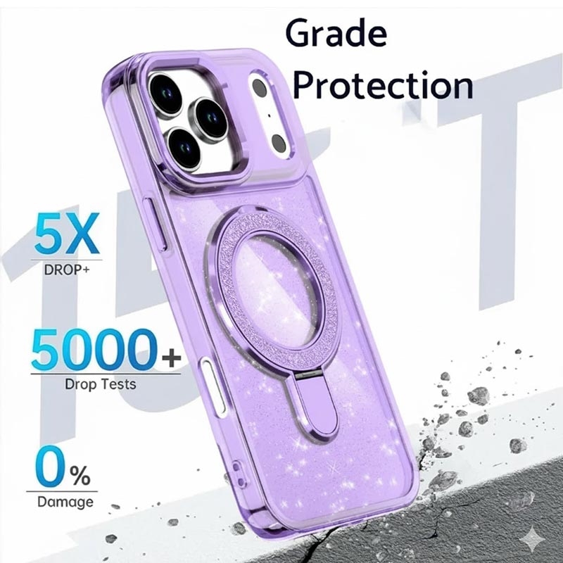 Bring style and protection together with the iPhone 17 Pro glitter case, combining elegant sparkle with reliable everyday durability. Made from high-quality materials and equipped with a built-in metal ring kickstand, this case keeps your phone secure, functional, and fashionable all day long.