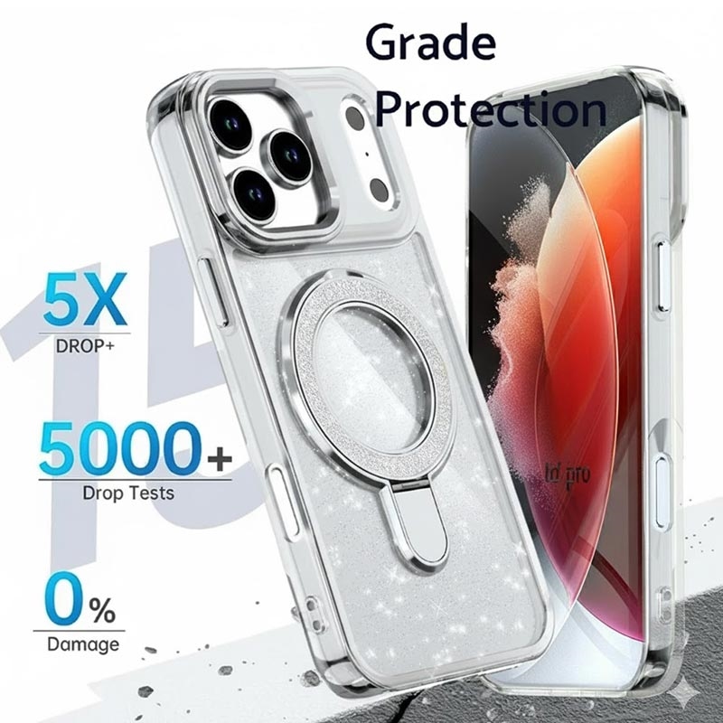 Bring style and protection together with the iPhone 17 Pro glitter case, combining elegant sparkle with reliable everyday durability. Made from high-quality materials and equipped with a built-in metal ring kickstand, this case keeps your phone secure, functional, and fashionable all day long.