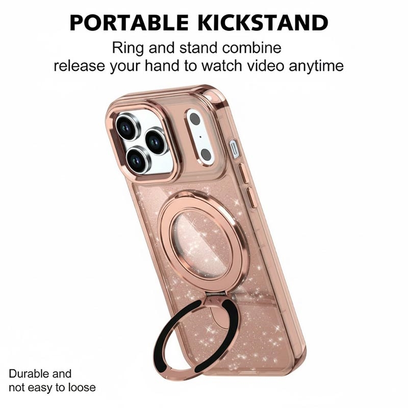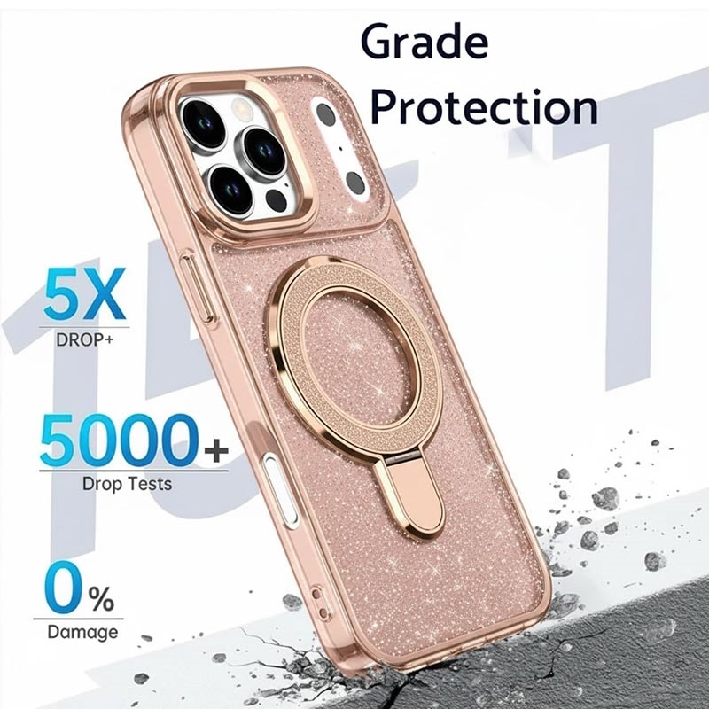 Bring style and protection together with the iPhone 17 Pro Max glitter case, combining elegant sparkle with reliable everyday durability. Made from high-quality materials and equipped with a built-in metal ring kickstand, this case keeps your phone secure, functional, and fashionable all day long.