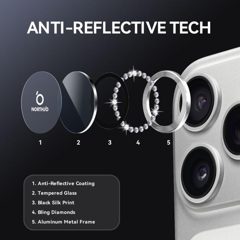Add sparkle and protection to your iPhone 17 Pro, iPhone 17 Pro Max with the NORTHJO Camera Lens Protector. Designed with shimmering rhinestones and precision-cut tempered glass, it keeps your camera lens safe from scratches, dust, and impact while adding a touch of elegance and luxury.