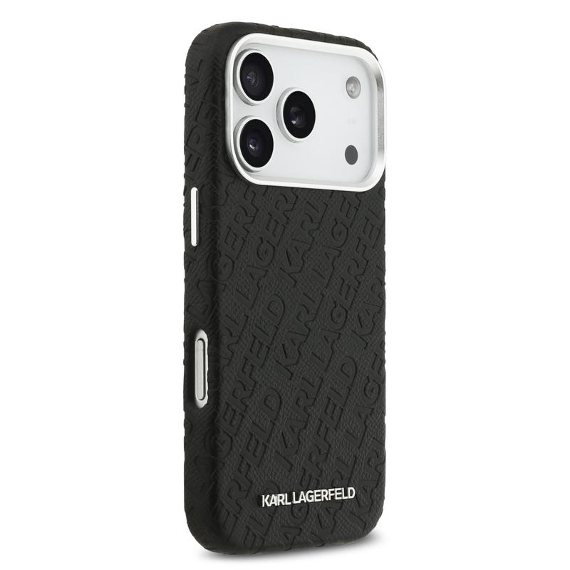 Karl Lagerfeld Grained Repeated Logo MagSafe Case for iPhone 17 Pro - Premium Polyurethane Back Cover