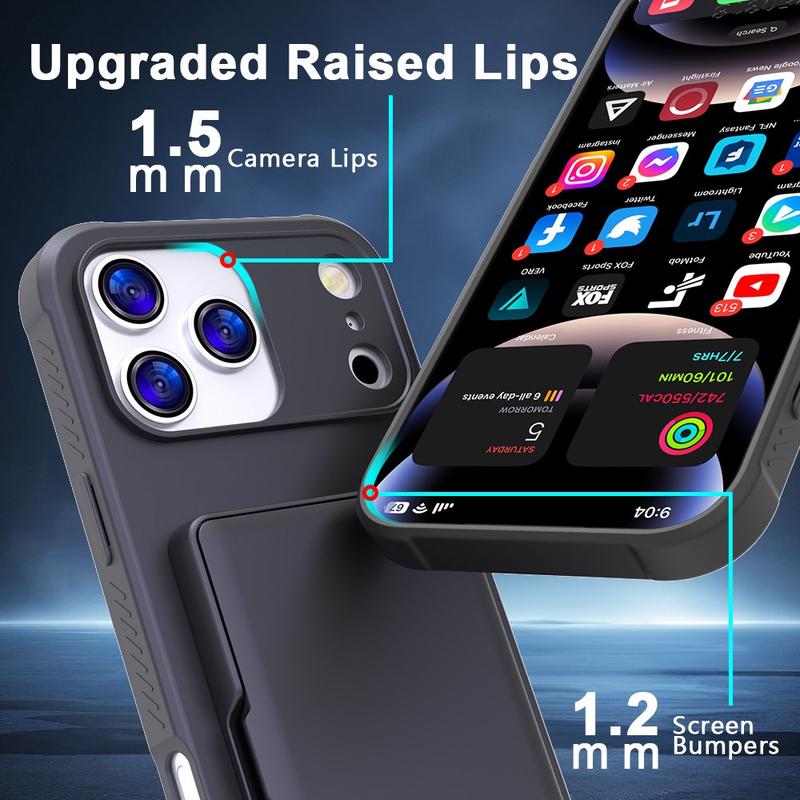 Refresh the look of your iPhone 17 Pro Max with this sleek Hybrid Case! To always look perfect, there is an easily accessible mirror. Make shopping with two credit card slots easier. Reinforced edges will additionally protect your iPhone 17 Pro Max.