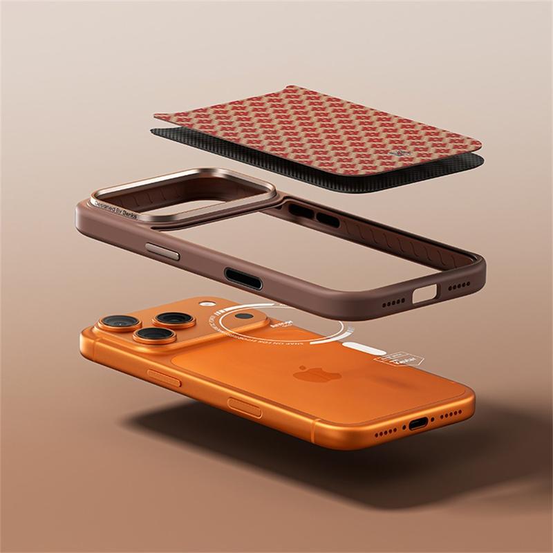 The artistic geometric woven aramid fiber backplate offers a unique tactile feel and a sophisticated, high-tech appearance. The textured surface enhances grip and highlights the premium nature of the material, making the case stand out while preserving a minimalist design.