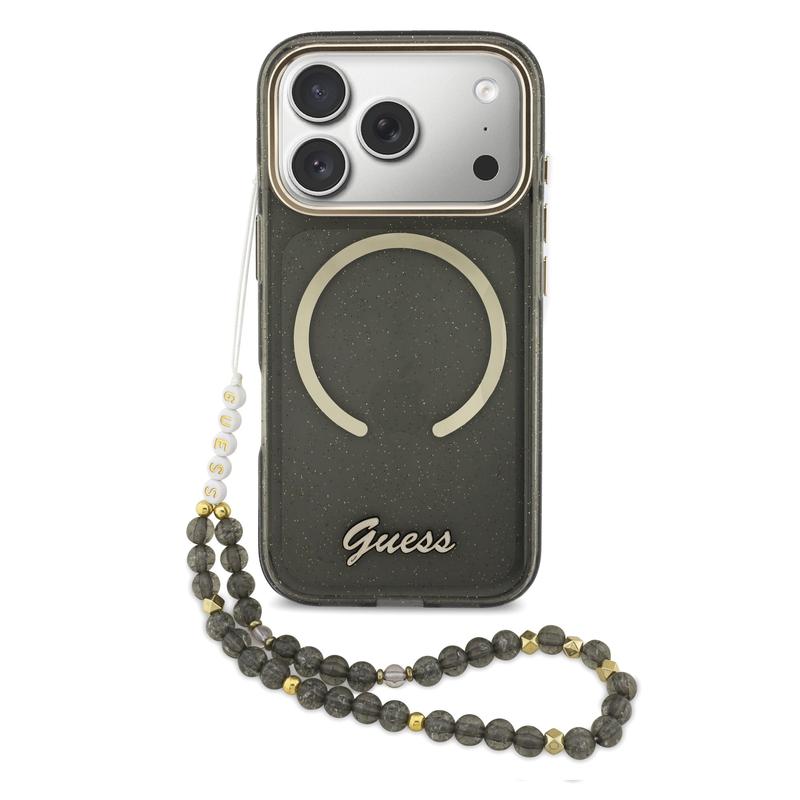 The Guess IML Glitter Script Strap MagSafe case for iPhone 17 Pro is made for anyone who wants everyday protection with a fashion-forward finish. The case combines a hard PC back with flexible TPU sides for a comfortable grip and reliable protection against daily scratches and dust. With MagSafe compatibility, it works seamlessly with wireless charging and MagSafe accessories, so you can snap on chargers and add-ons without removing the case. The standout glitter script design and iconic Guess branding turn your iPhone 17 Pro into a stylish accessory, while the included beaded wrist strap adds both flair and a more secure hold in your hand.