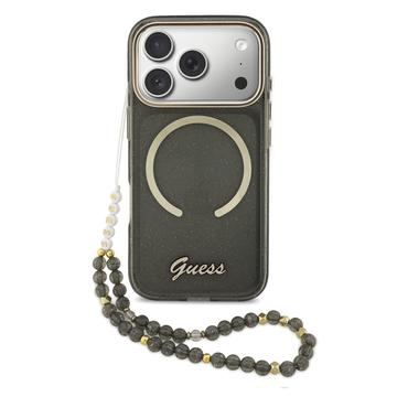 Guess IML Glitter Script Strap MagSafe Case for iPhone 17 Pro - Glitter Back Cover with Wrist Strap, PC+TPU Protection, MagSafe Compatible