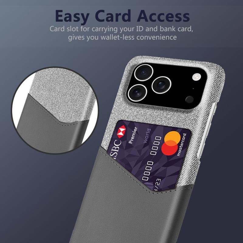 Chraňte svůj iPhone 17 Pro pouzdrem KSQ s držitelem karty. V tomto případě je vaše ID nebo kreditní karta k dispozici v každém okamžiku. Vyrobeno ze silných materiálů, účinně blokujte váš telefon z pádů a škrábanců.