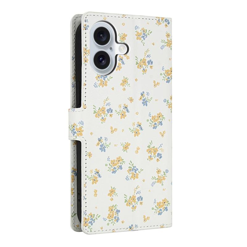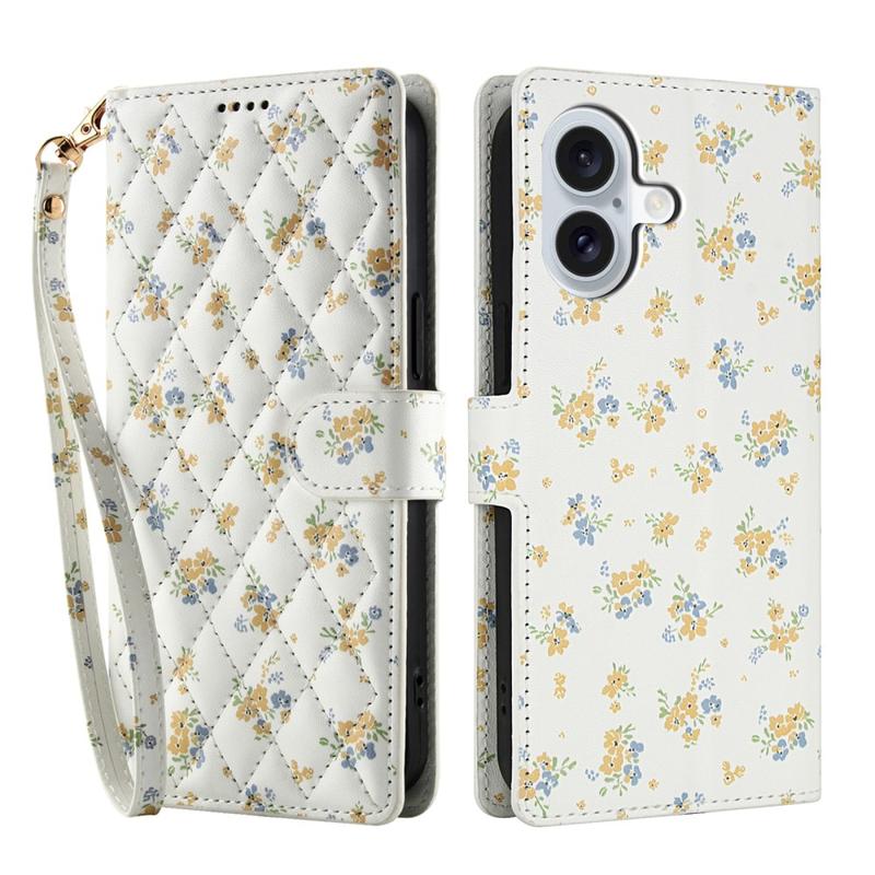 Rhombic Floral Wallet Case for iPhone 17 - with Strap and Card Slots